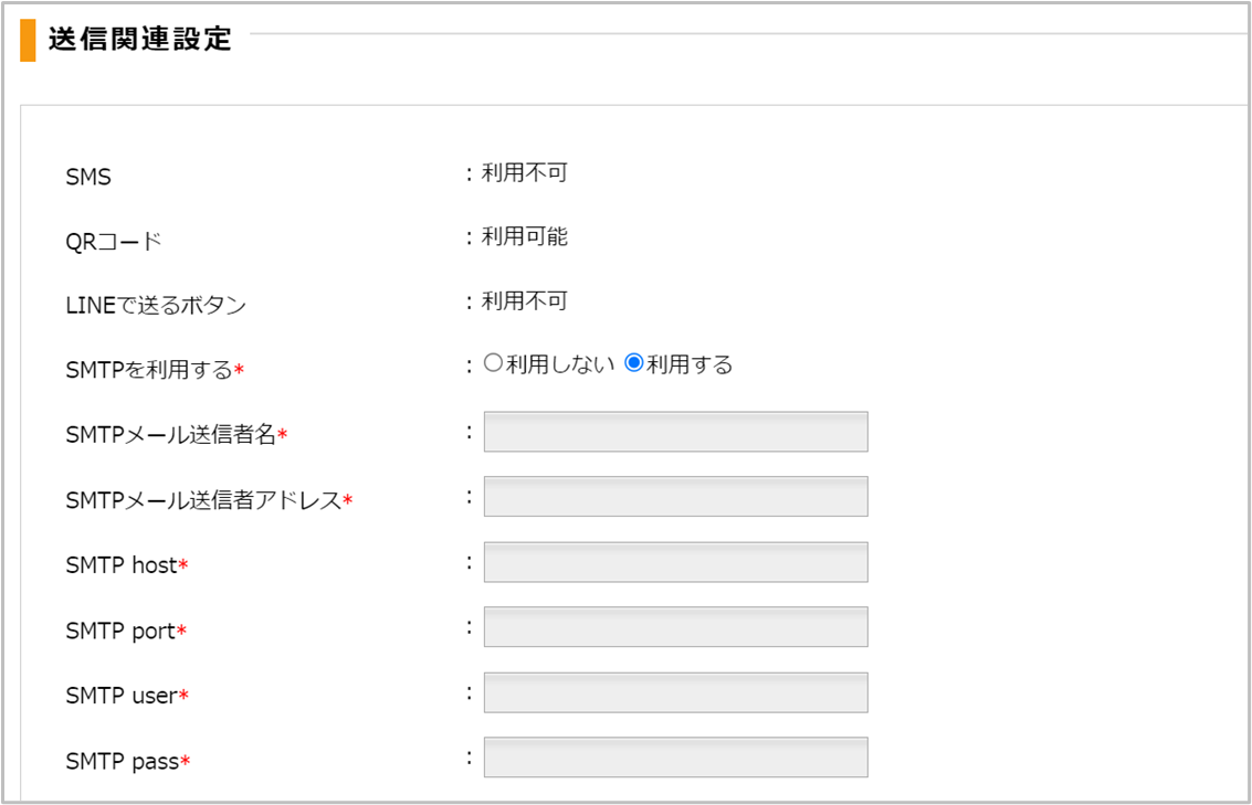 ご利用可能な送信種別の確認、SMTPの設定ができます。