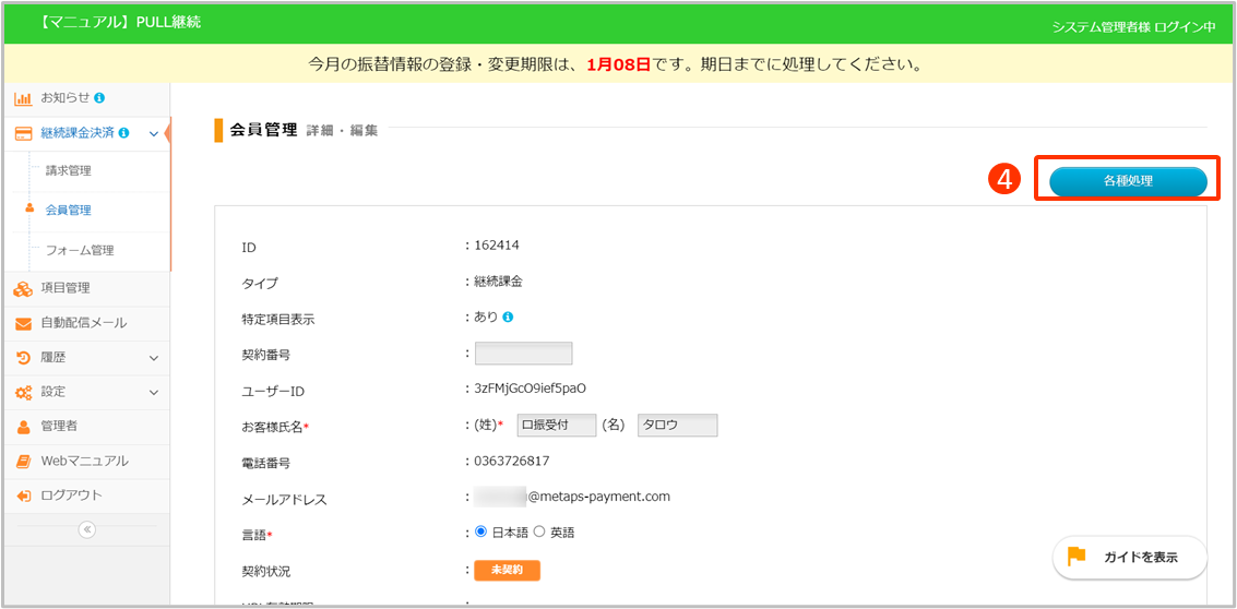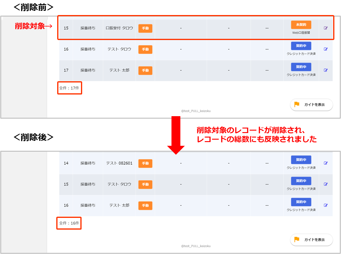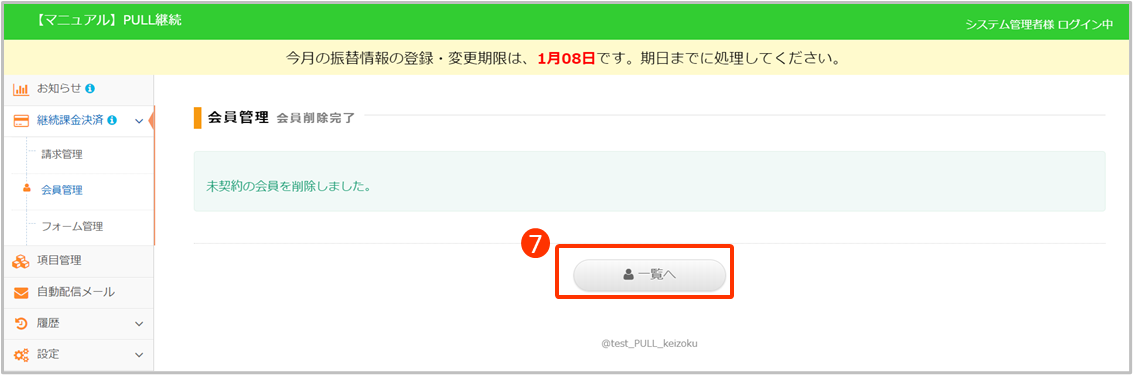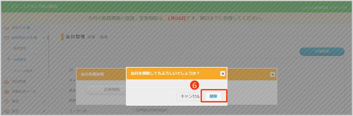 ※支払情報の登録が済んでいる会員レコードは削除することができません。