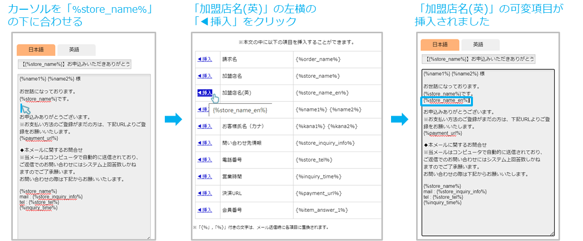 請求情報ごとに変わる項目を、自動で配信メールへ反映させることができます。