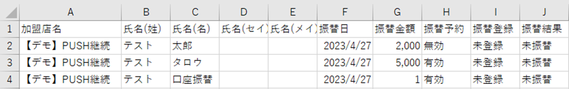 | 氏名(名) | 振替情報のお客様の名 |