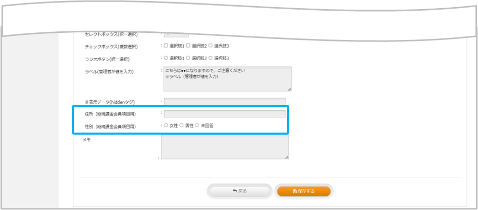 【反映例:お客様入力画面 継続課金会員用項目】
