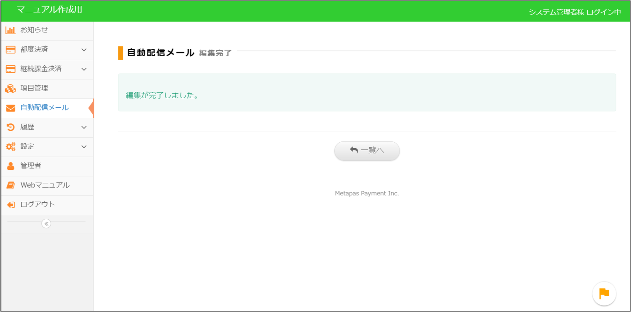 ⑥自動配信メールへの請求書ダウンロードURLの設定が完了