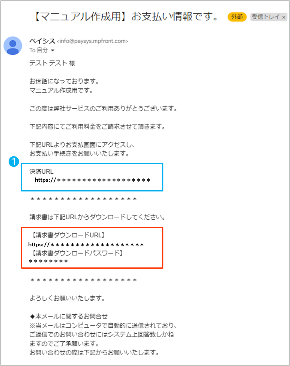 ④[請求書URL][請求書ダウンロードパスワード]をコピーしてメール、LINEなどに貼り