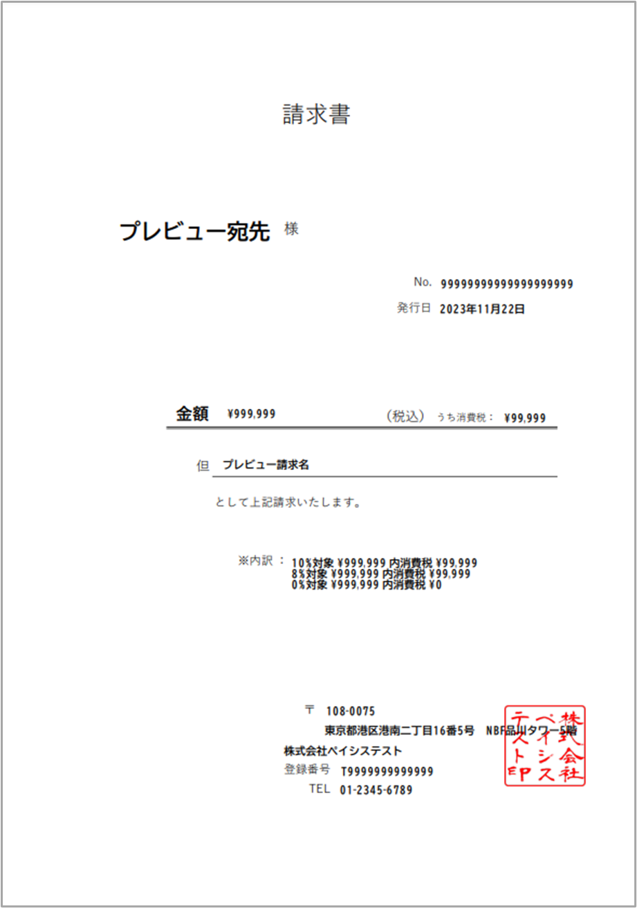 ⑬[プレビュー]をクリックし請求書のプレビューを確認