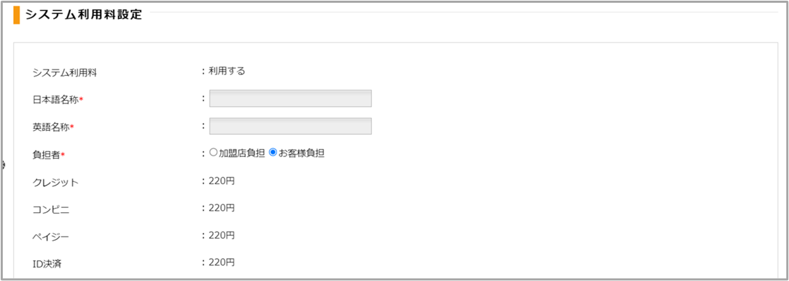| 英語名称 | システム利用料の名称(英語) |