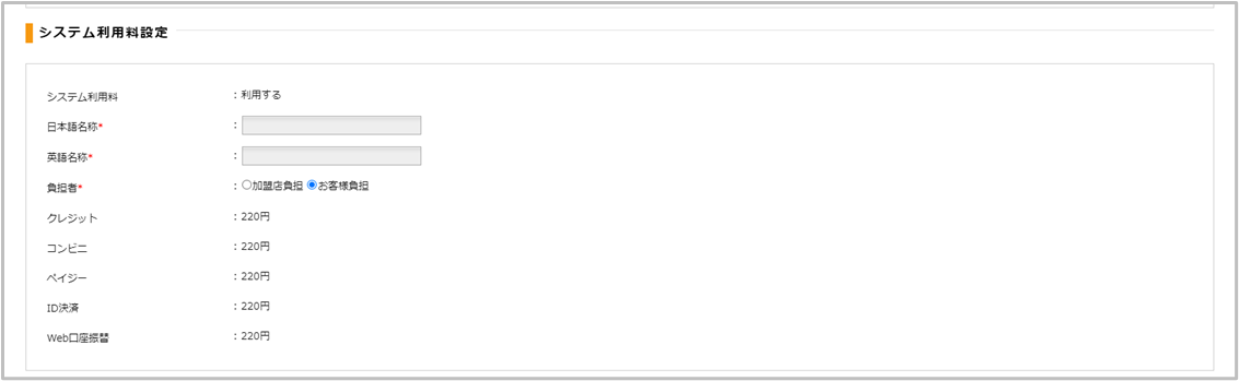| 英語名称 | システム利用料の名称(英語) |