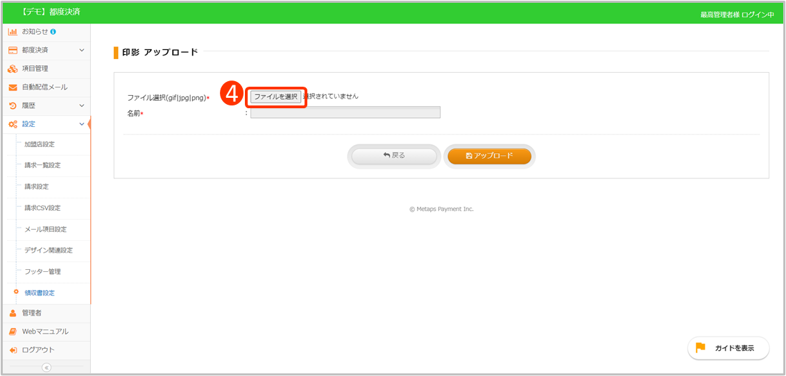 ③[印影アップロード]をクリック