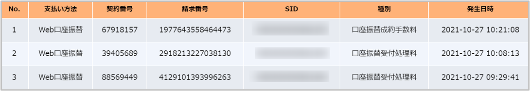 | 発生日時 | 口座振替処理が発生した日時 |