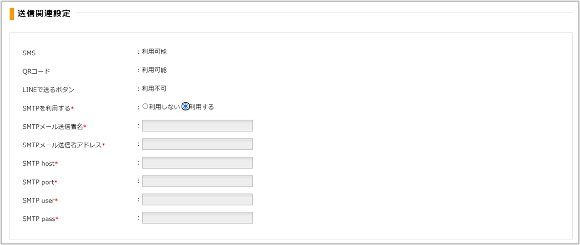 ご利用可能な送信種別の確認、SMTPの設定ができます。