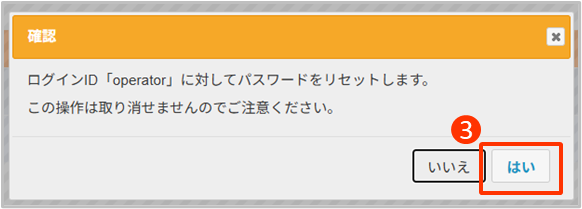 [加盟店管理者]権限のアカウントで各ログインアカウントのパスワードを初期化できます。