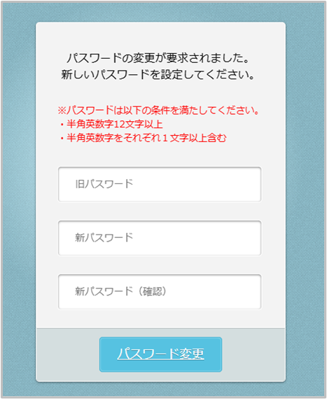 ログイン画面へ戻り、⑥で設定した新パスワードでログインください。