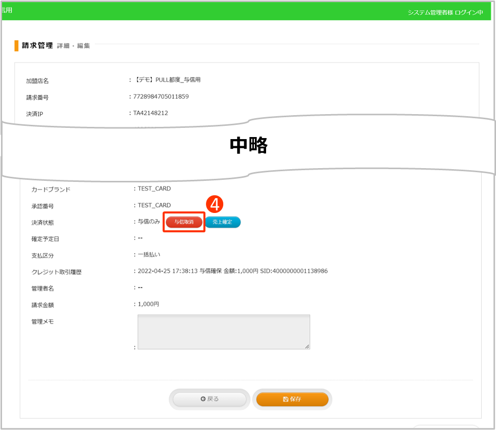④[与信取消] をクリック