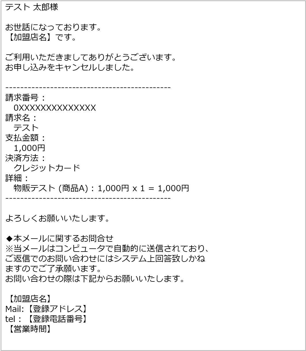 ※手続き完了後、お客様へは下記テキストの申込キャンセルメールが