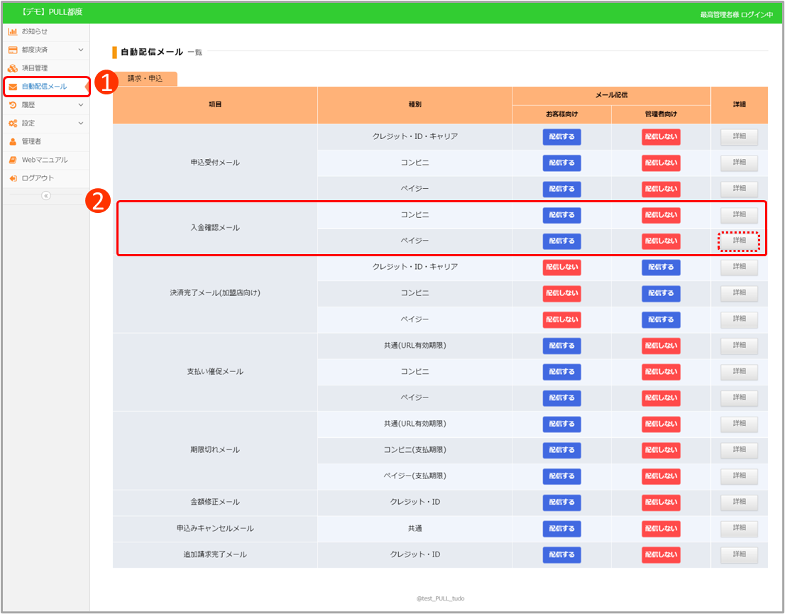 | 種別 | 編集中メールの対象決済種別の表示 [共通]は全ての決済種別に共通するメールを意味します。 |