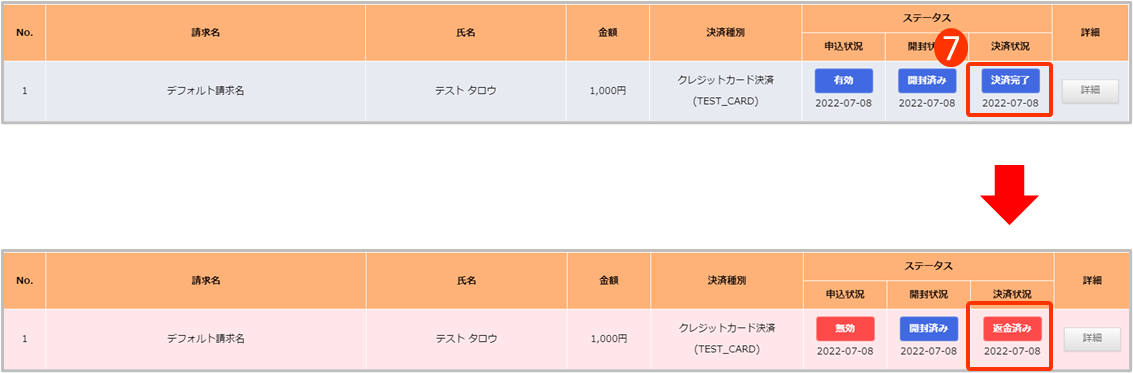⑦全額返金が反映されていることを確認