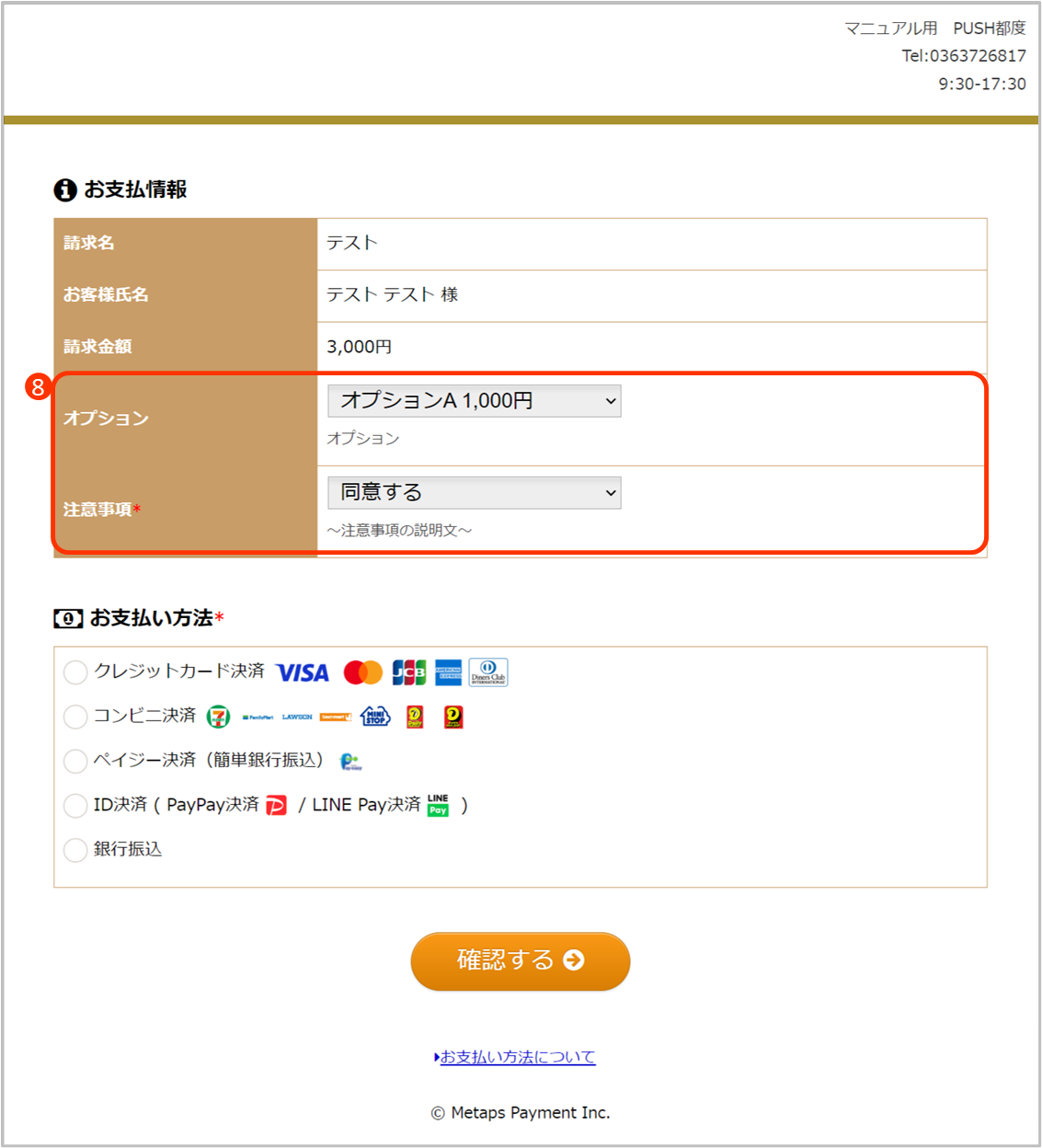 ⑧作成した項目がお客様画面に反映されます。(項目は例です)