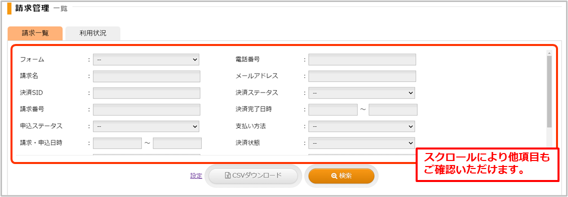 請求情報の決済状況 |