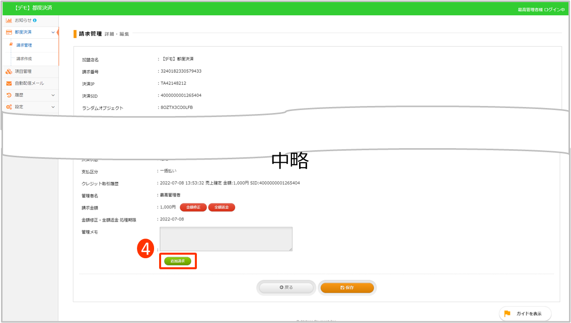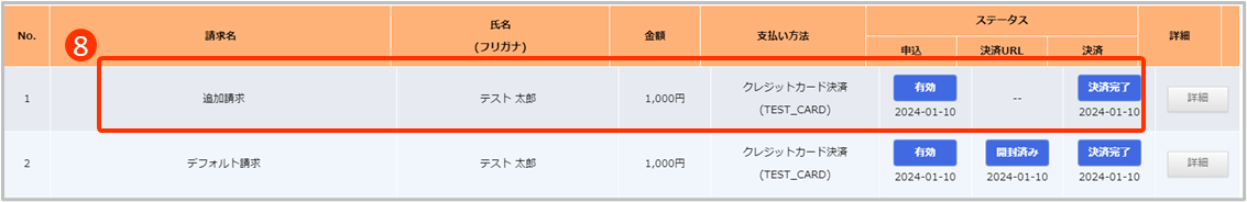 設定している場合、お客様に追加請求完了メールが配信されます。